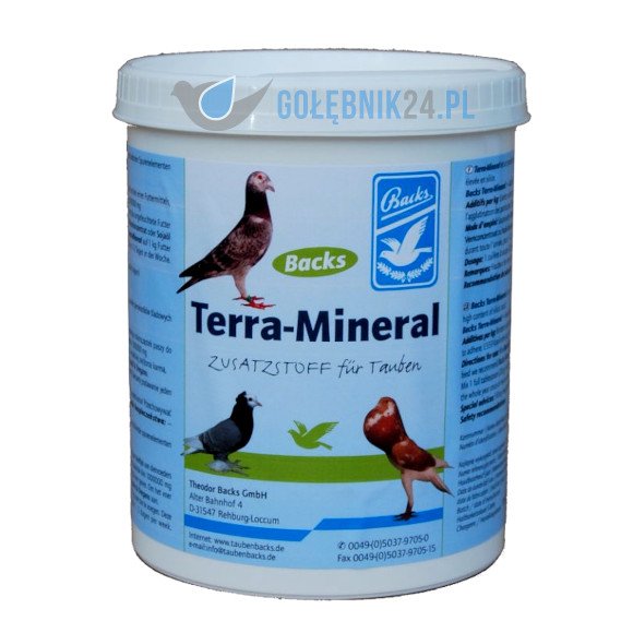 Backs Terra-Mineral jest naturalnym produktem z wieloma pierwiastkami śladowymi oraz kwasem krzemowym. Przyczynia się do polepszenia jakości piór. Preparat Backs Terra-Mineral jest w stanie wchłaniać substancje szkodliwe z jelita i działa przez to uspokajająco na cały trakt trawienie.