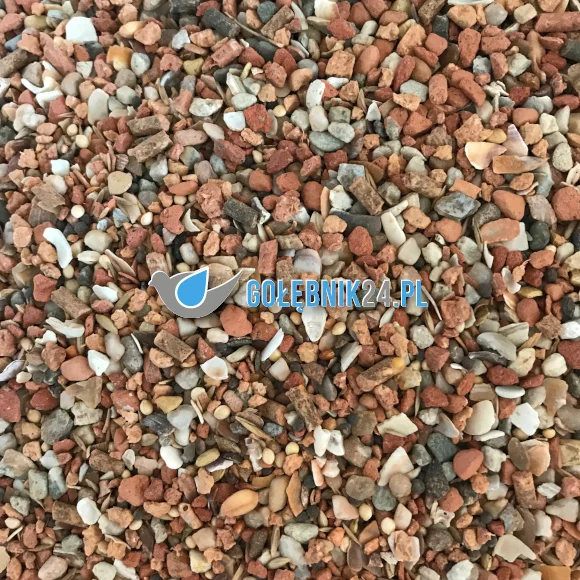 Muszle ostryg, czerwony kamień, krzemień, ostry żwir, wapno i nasiona chwastów.
